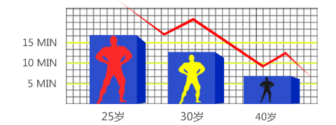 一个正常的男人勃起时间应为30分钟(可使女性达到高潮快感的最短时间)以上,而经调查发现, 随着年龄增大,男性的性功能呈直线下滑状态。